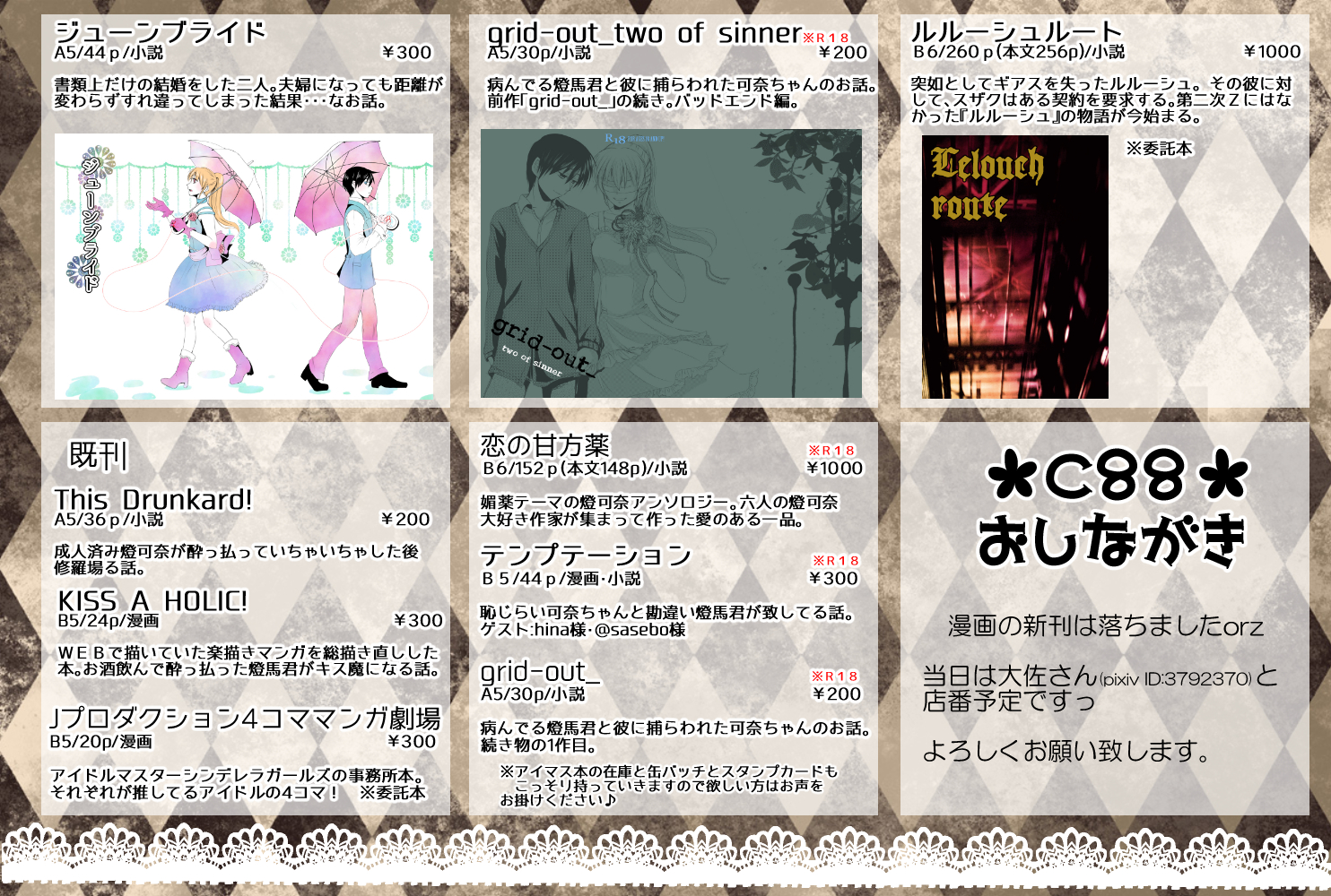 夏コミおしながき